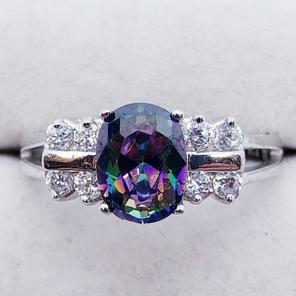 104 - JT137 - STERLING SILVER MYSTIC TOPAZ (3.5G) RING SIZE 6.75. JEWELLERY