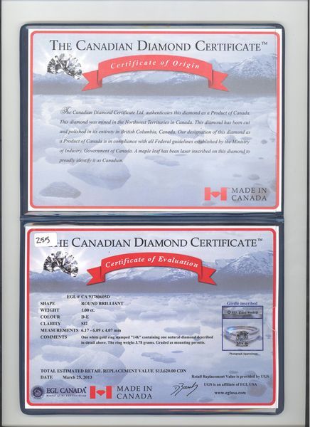 1=1.00CTS ROUND BRILLIANT CUT DIAMOND, SI2 CLARITY, D/E COLOUR, CANADIAN, EGL CERTIFICATE, RETAIL VALUE $13,620.00