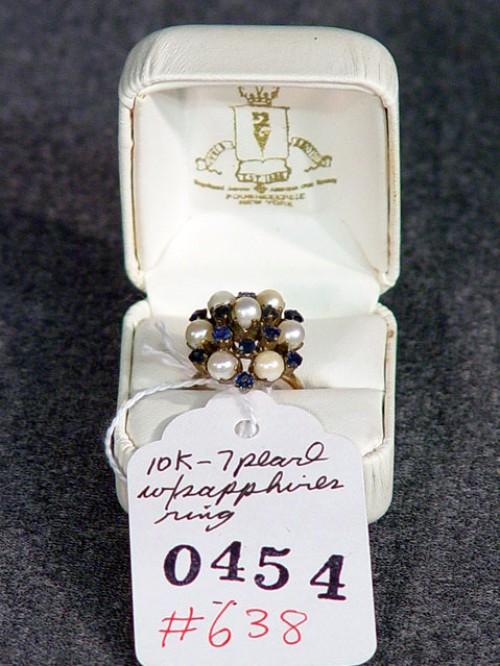 10K 7-PEARL WITH SAPPHIRES COCKTAIL RING