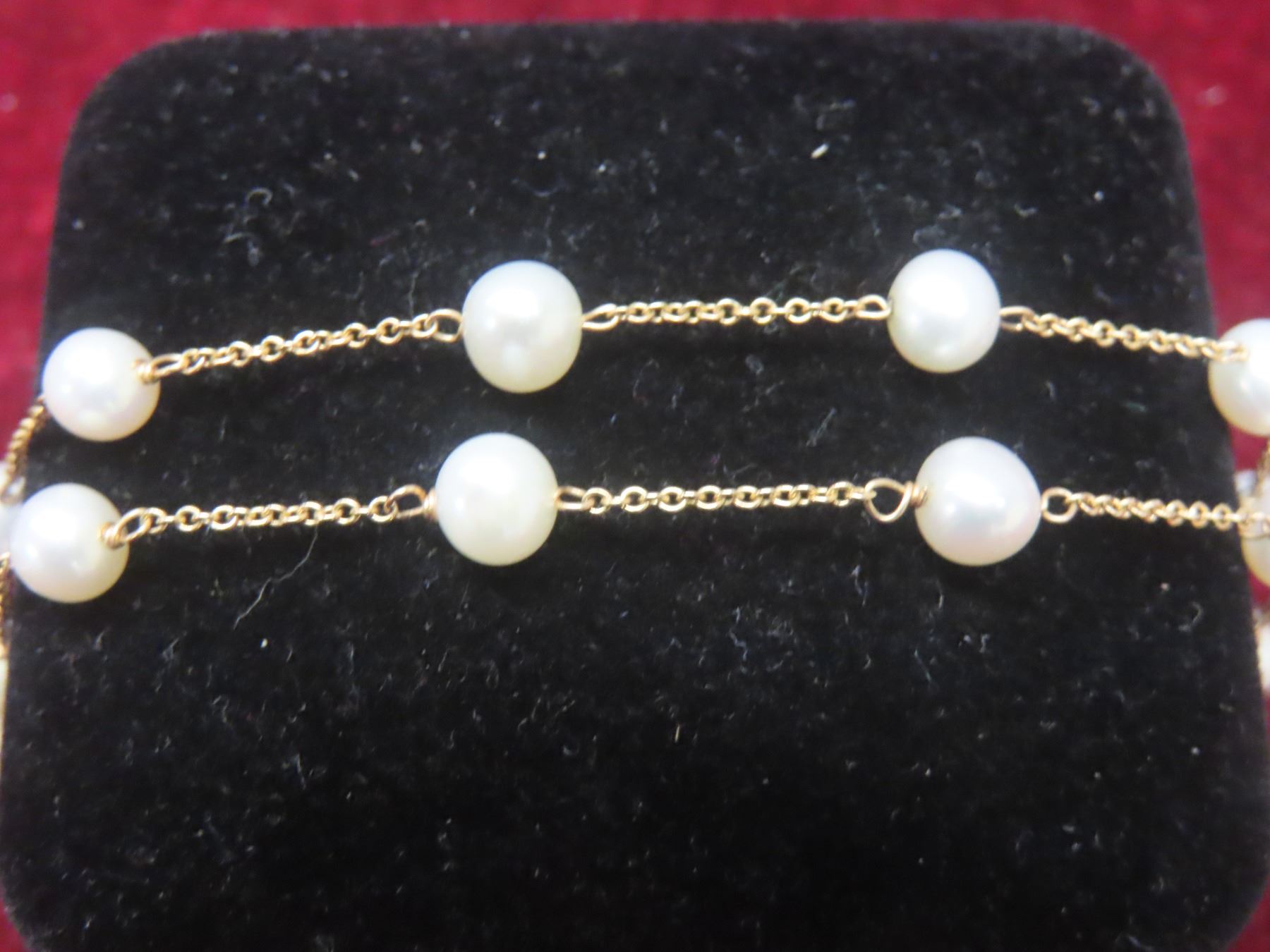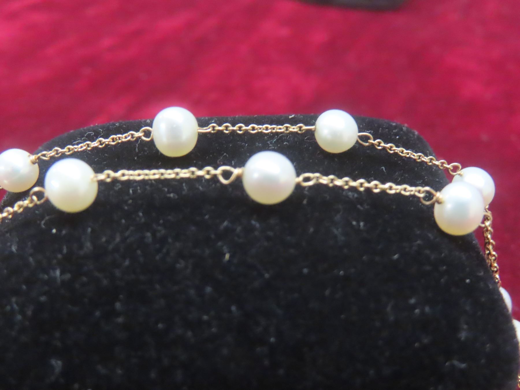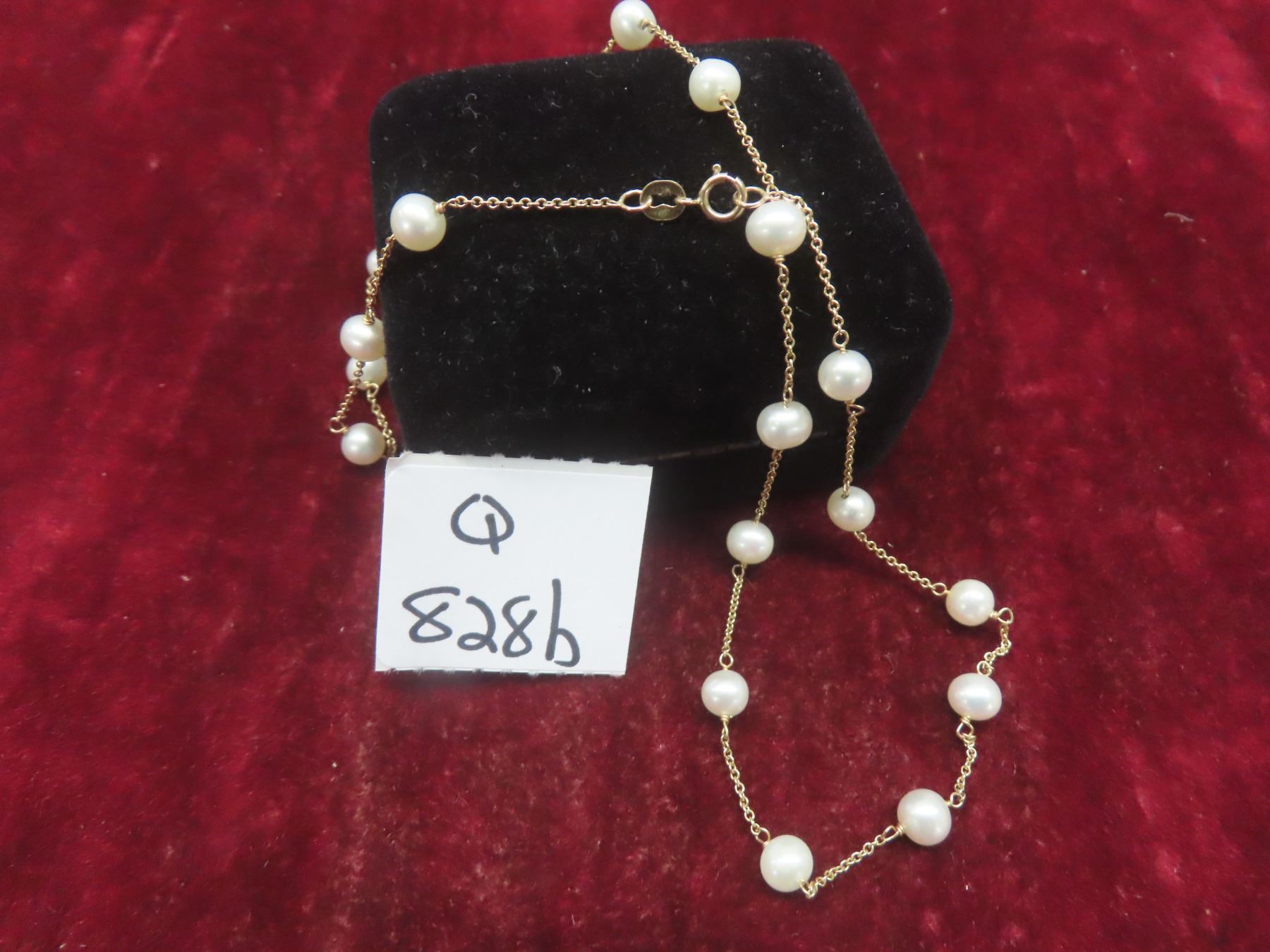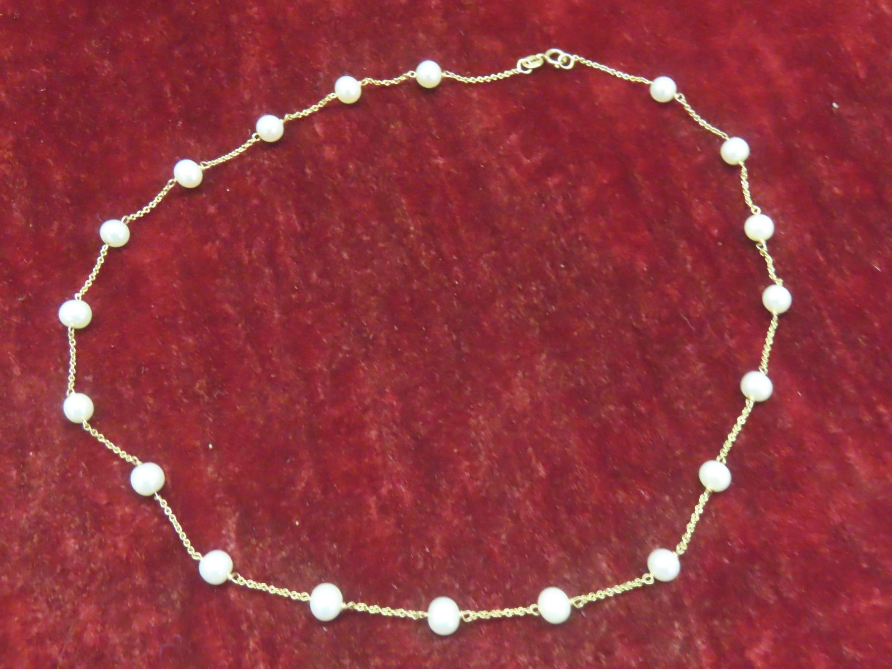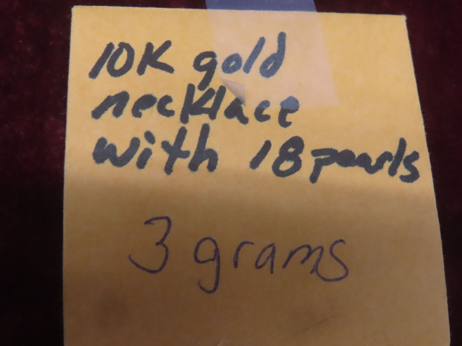 10K Gold Necklace With 18 Pearls, Total Weight 3 Grams