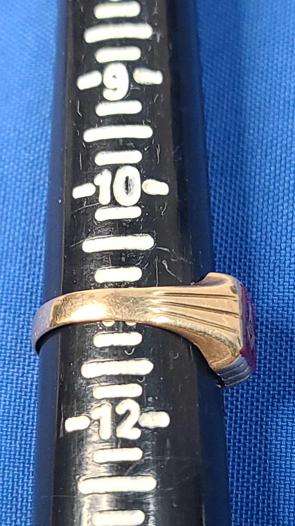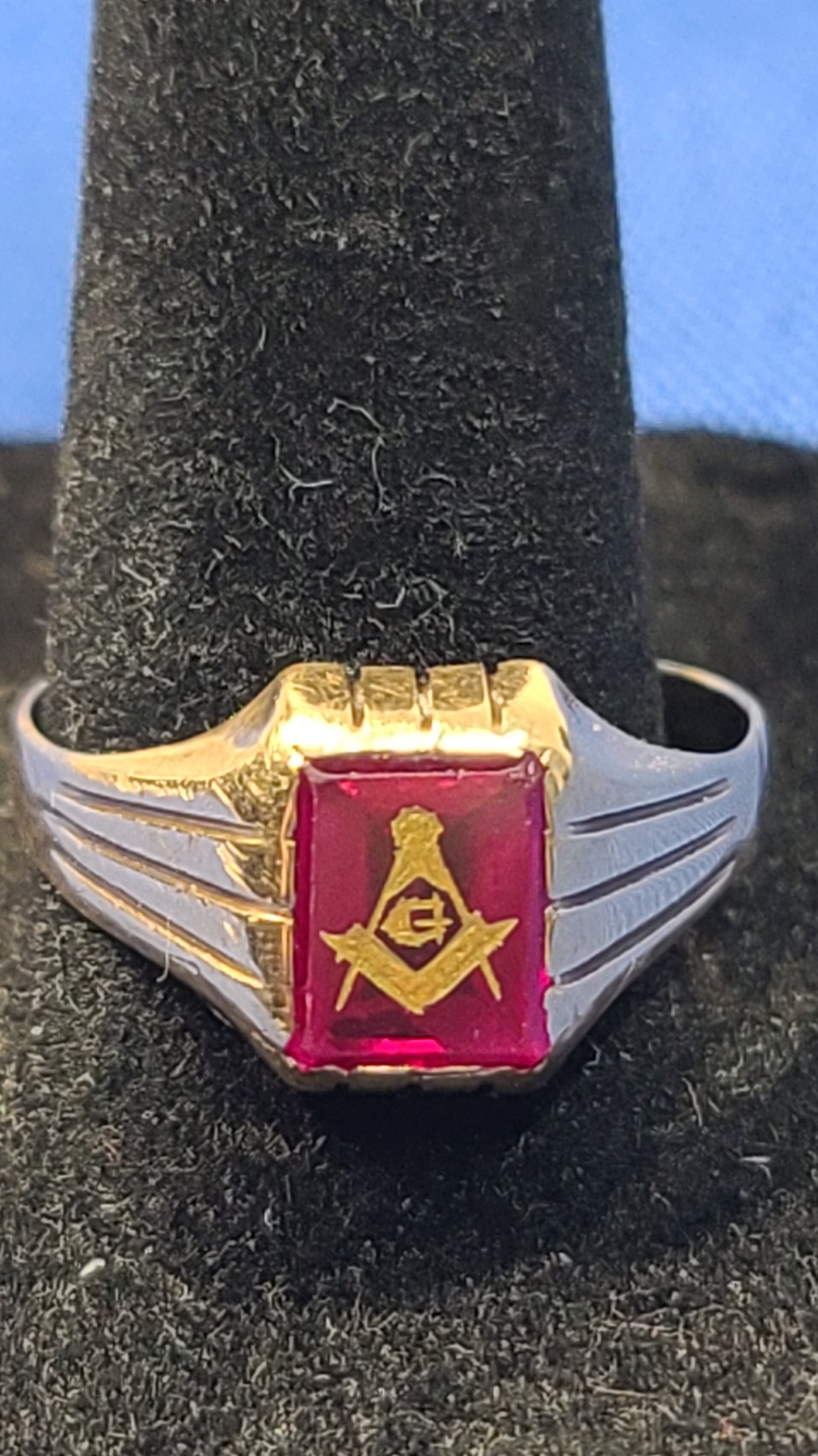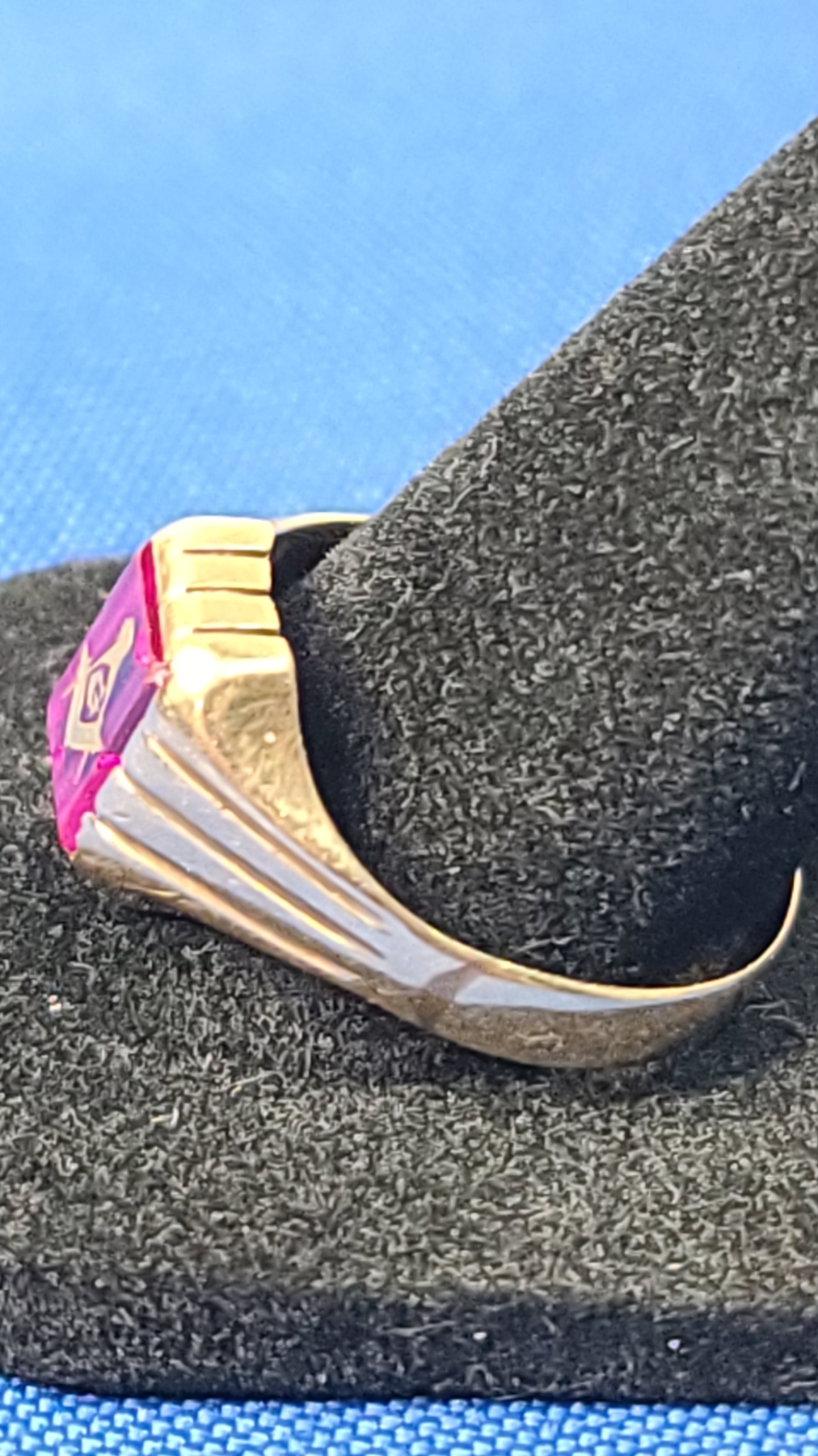 10K Vintage Masonic Ring Featuring Ruby - Size 11 - Weight: 4.6g