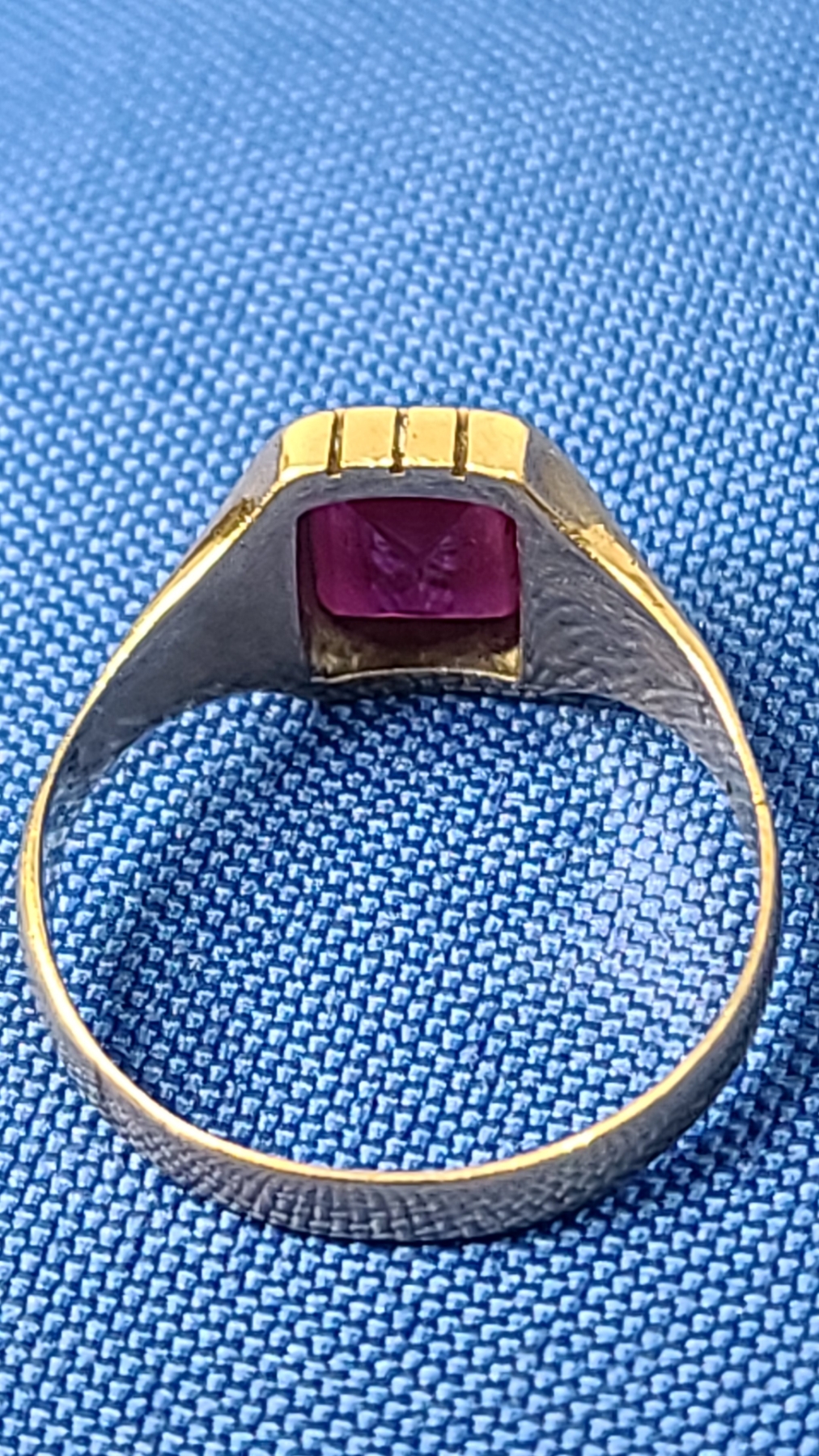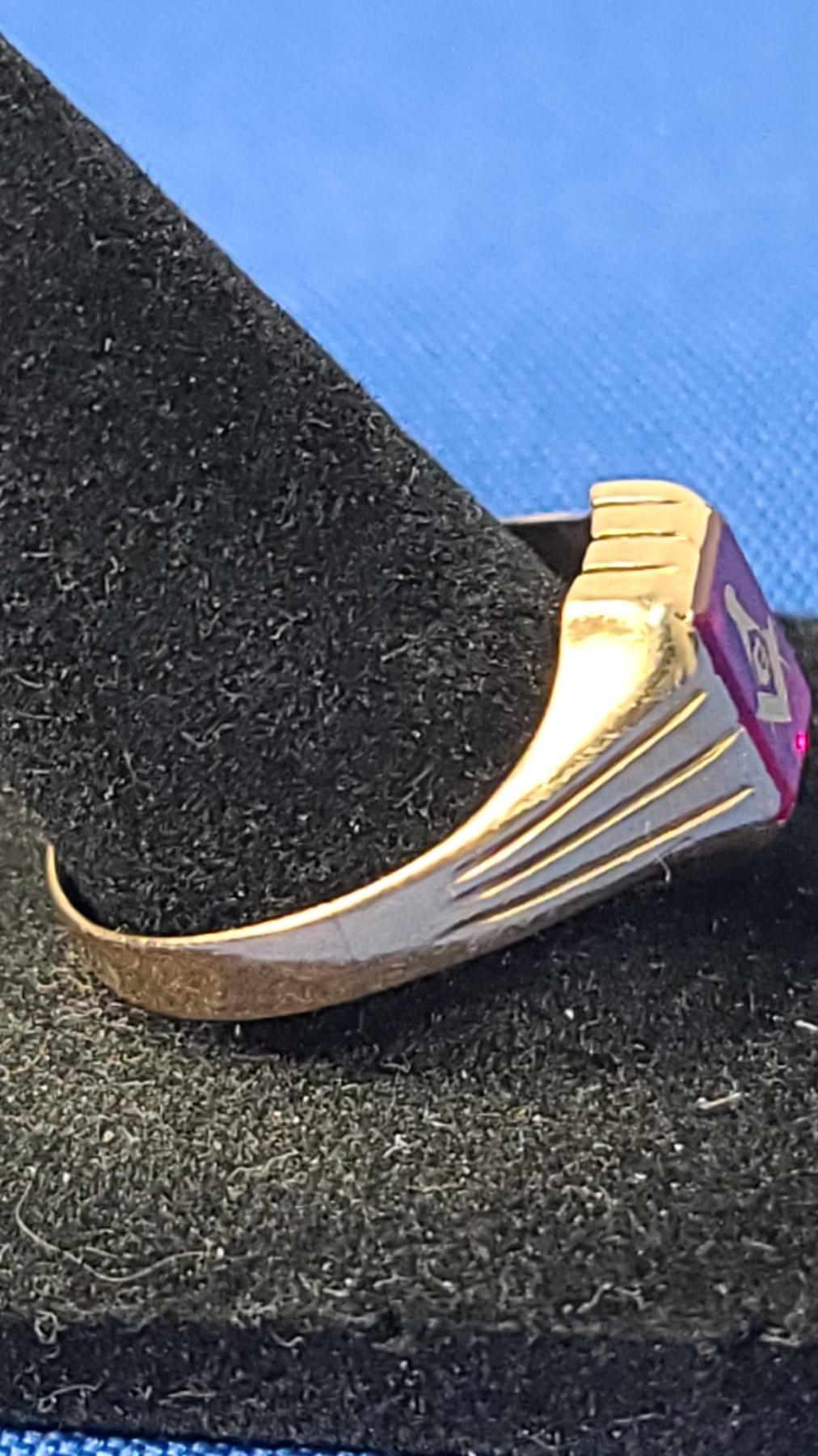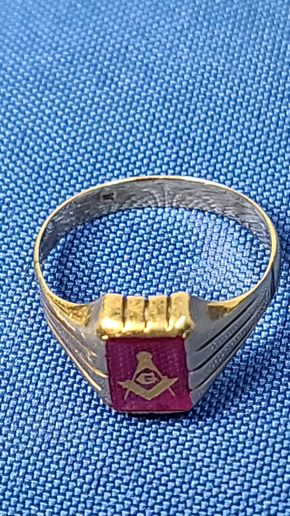 10K Vintage Masonic Ring Featuring Ruby - Size 11 - Weight: 4.6g