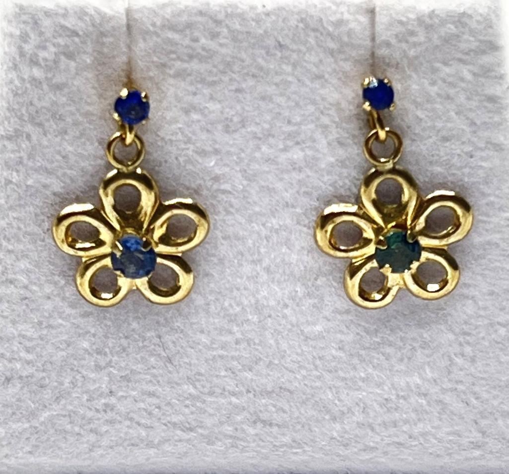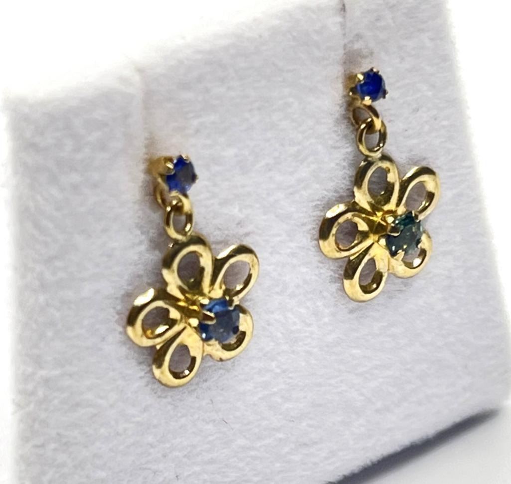 10KT Yellow Gold Natural Blue Sapphire Dangling Earrings, Retail $400.00. Sapphire is the birthstone for September.