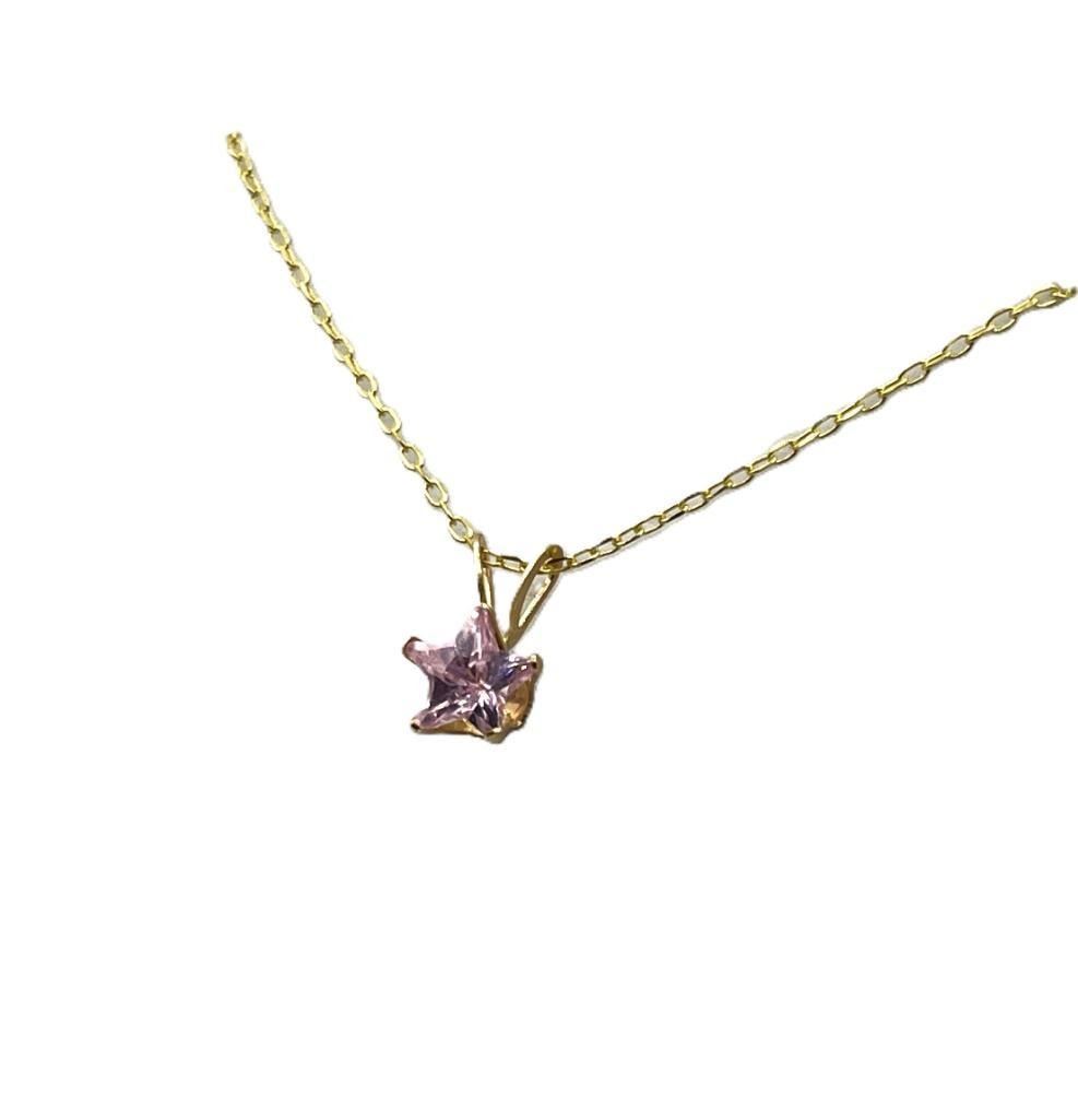 10KT Yellow Gold Pink CZ Star Shape Pendant with Gold Plated Sterling Silver Chain, Retail $350.00.