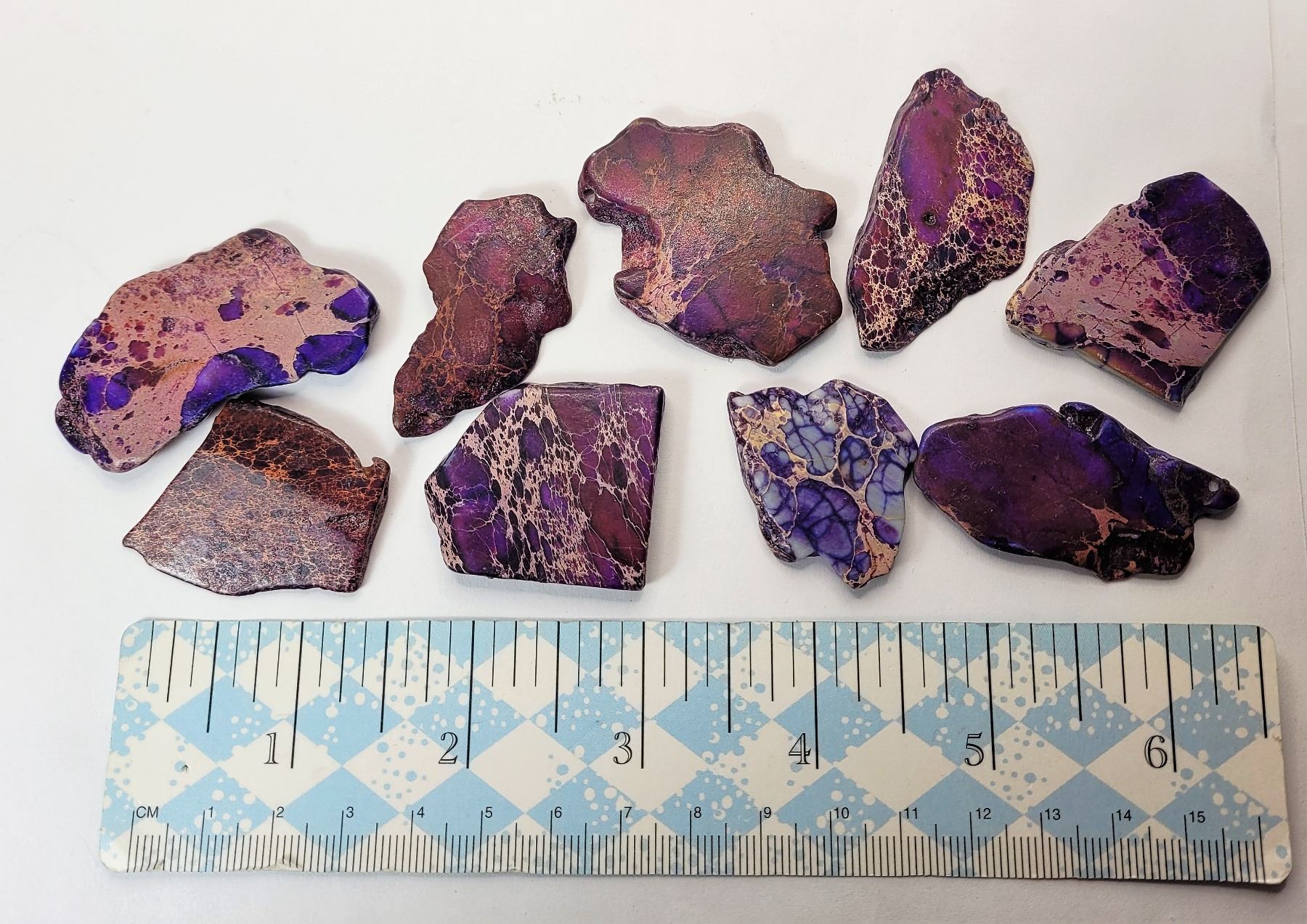 11) LOT OF 9 PURPLE JASPER SLICES, WEIGHS 82.9 GRAMS. COLLECTIBLES