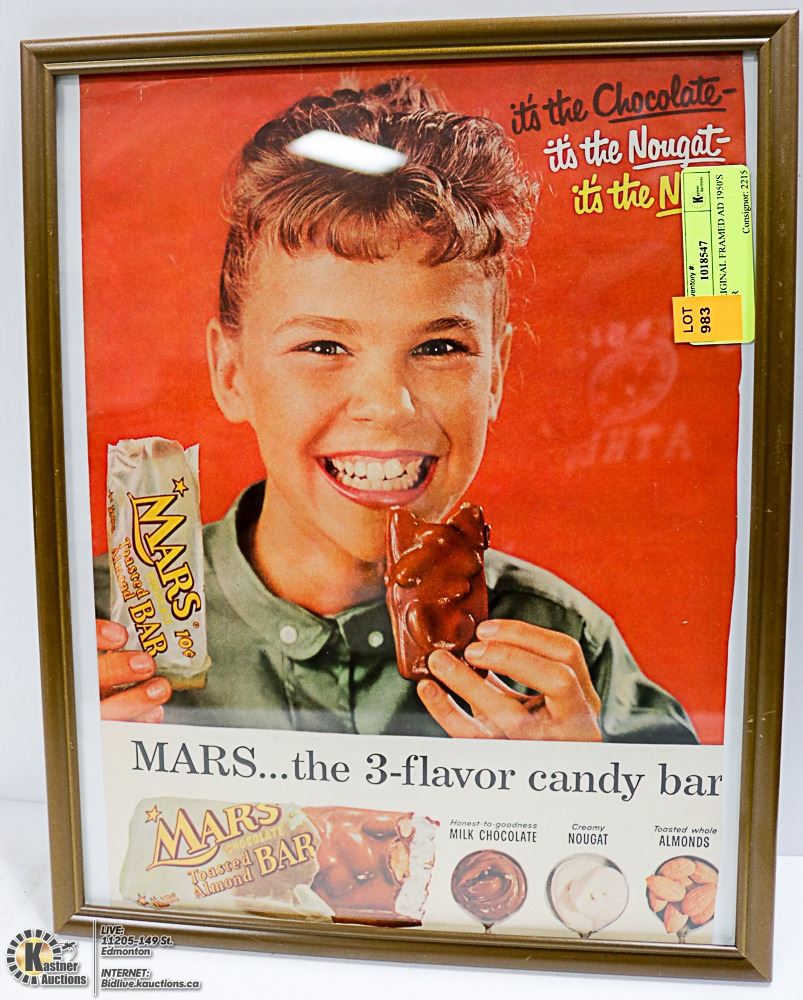 11 X 14 ORIGINAL FRAMED AD 1950'S MARS BAR