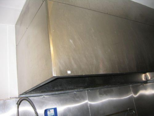 Stainless steel exhaust hood 118" wide, 46" deep, 42" height.