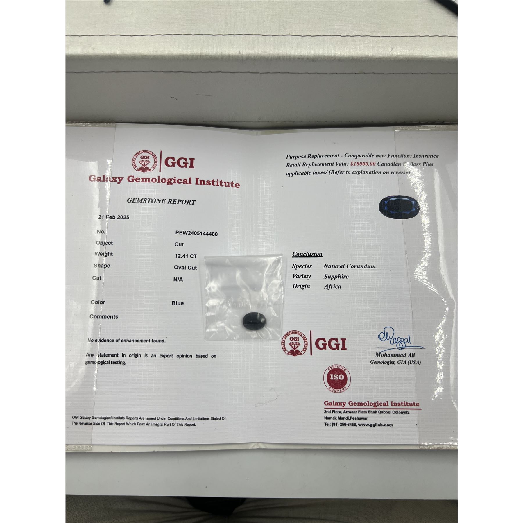 12.41 CT NATURA LSAPPHIRE OVAL CUT WITH INSURANCE REPLACEMENT VALUE $18000.00 CERTIFICATION .
