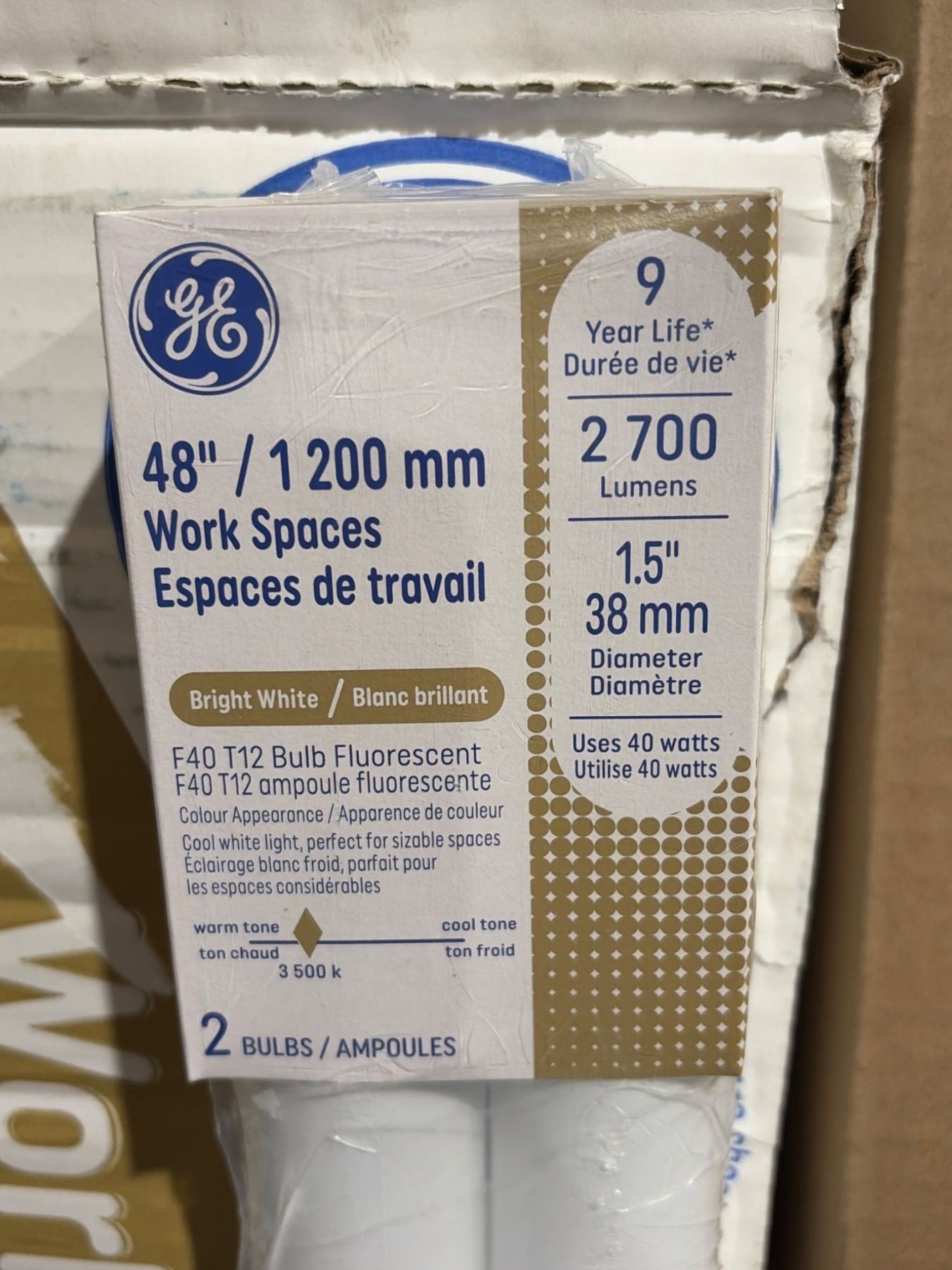 12 GE 48-inch F40 T12 Fluorescent Bulbs, Bright White, 40W 2 Packs of 2 Bulbs