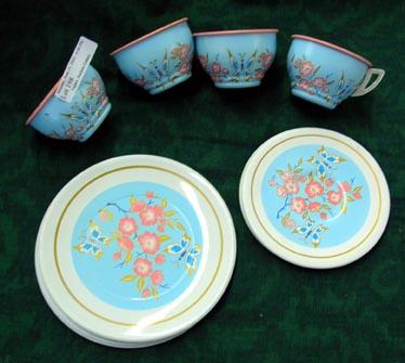 12 Pieces Ohio Art Metal Toy Dinnerware, Pink Flowers And Butterflies