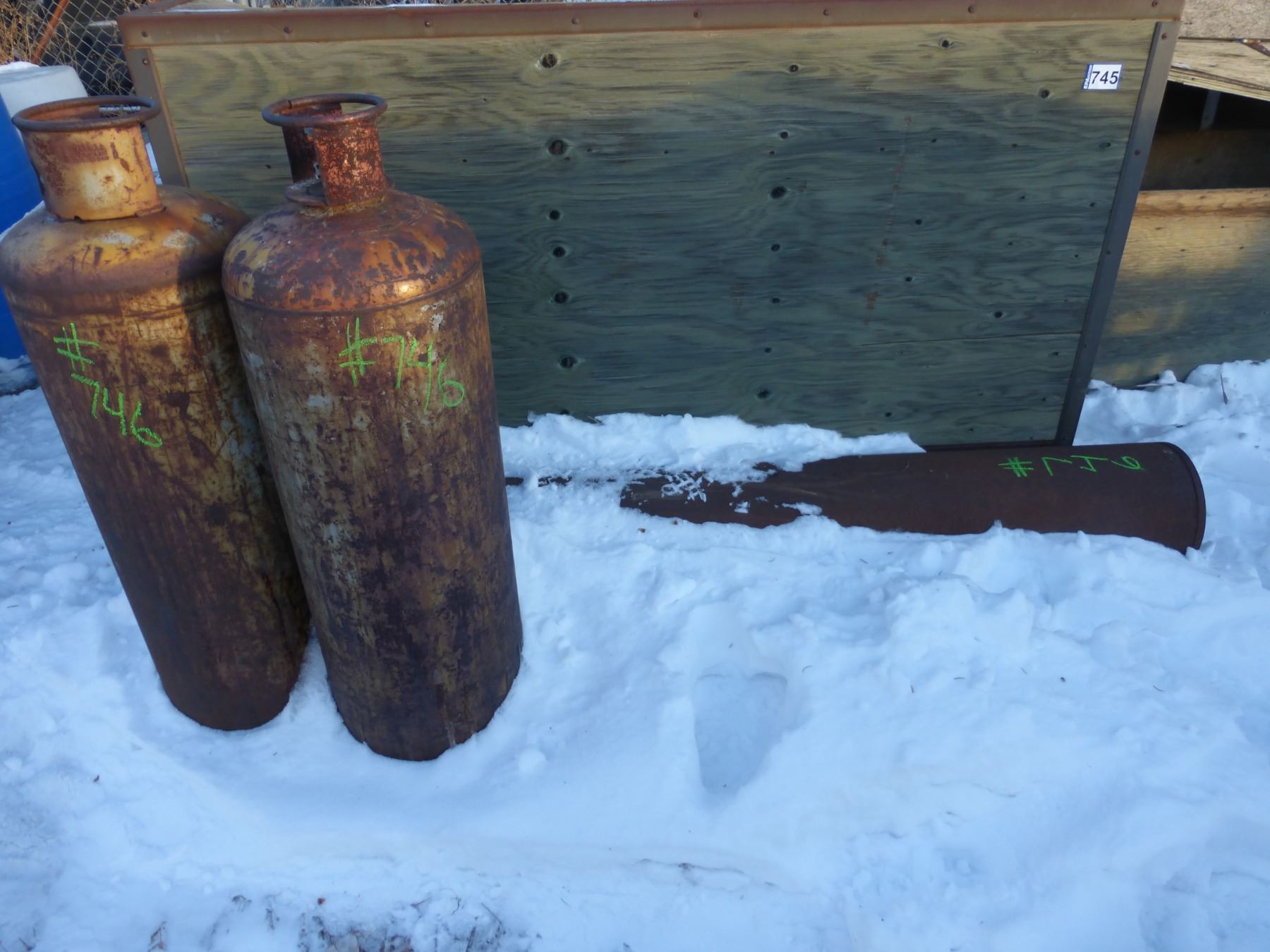 12" x 91" Steel pipe and 2- 100 lb propane bottles