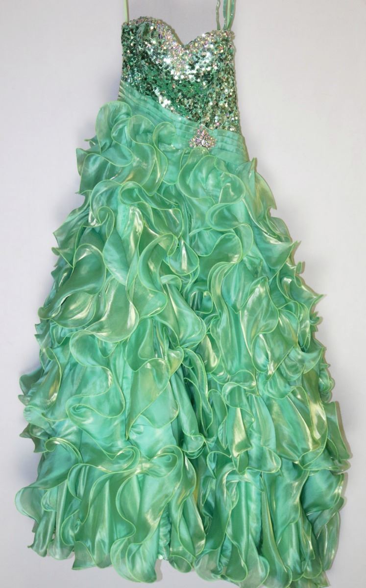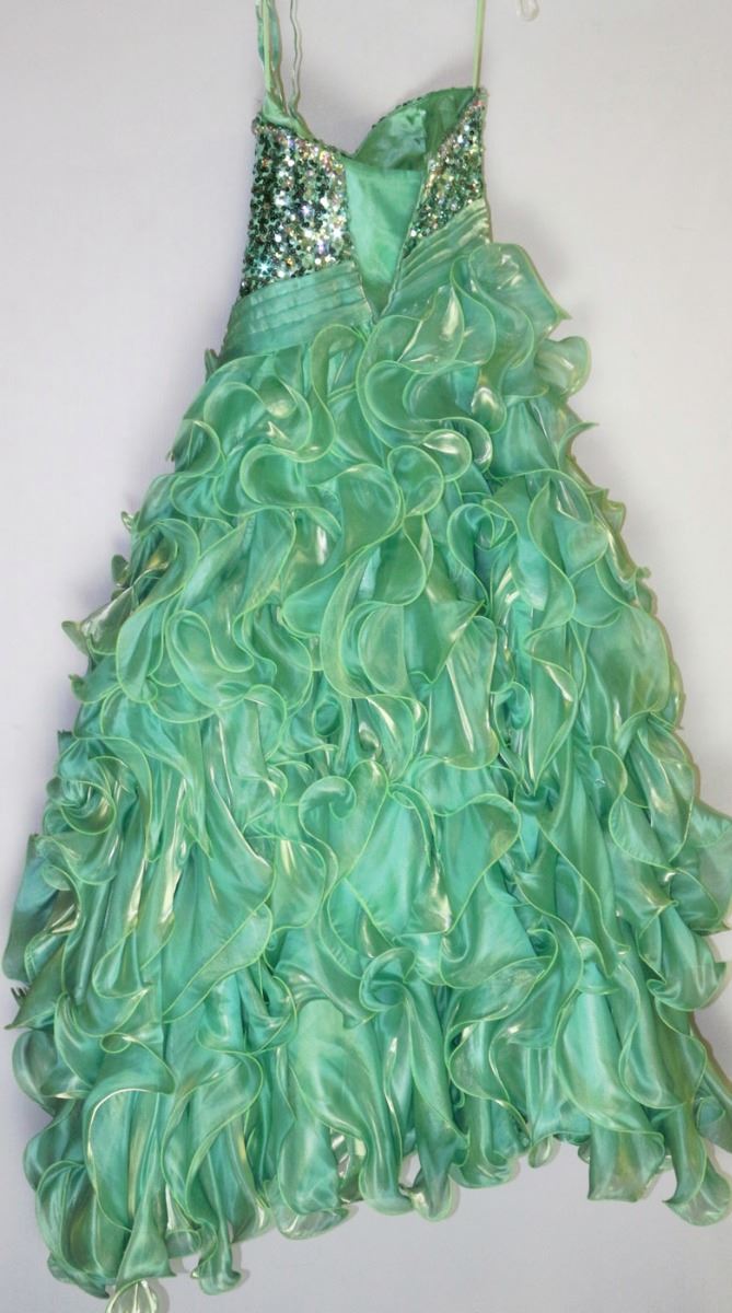 120-GREEN GEMMED TOP RUFFLED SKIRT, CORSET BACK
