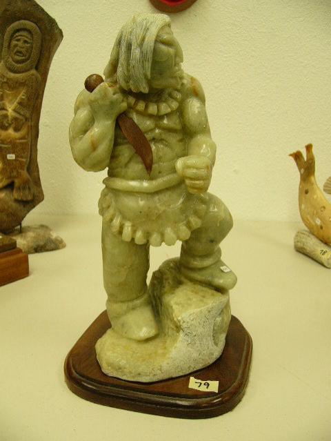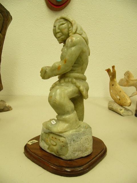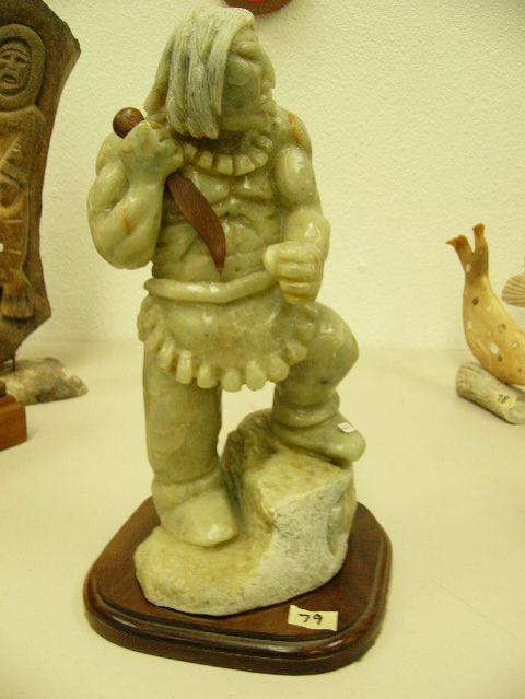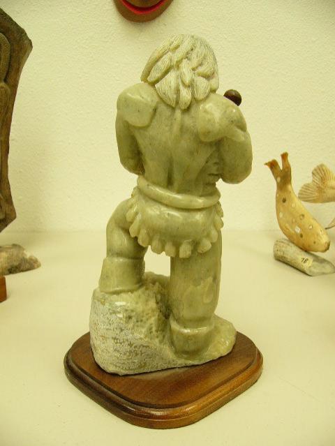 13" soapstone hunter tremendous quality carving mounted on wood base (25)