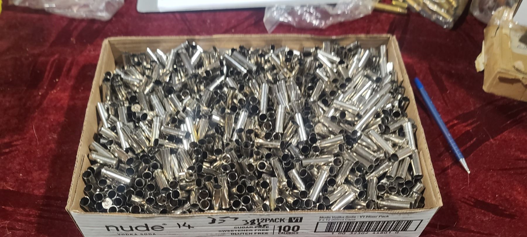 14 LBS OF MIXED .357 MAG AND .38 SPC STEEL CASINGS