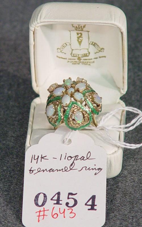 14K 11-OPAL AND ENAMELED COCKTAIL RING