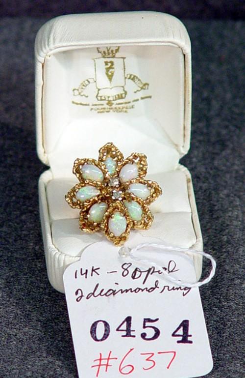14K 8-OPAL AND 2-DIAMOND COCKTAIL RING