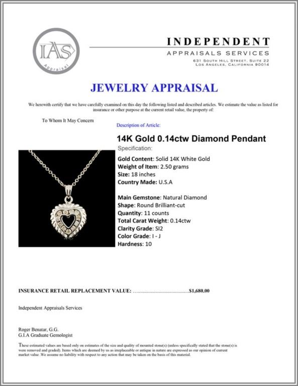 Regarding Appraised Jewelry and Loose Stones - Auctionfarm sends them out to a third party for Retail Replacement Value Appraisals, which are the most common. These types of evaluations are written for insurance needs. This would be the cost to replace the jewelry with an item of equal quality and kind, considered to be the current market price or the replacement value. This type of appraisal is done to protect you in the event of damage or loss of a valuable item. Our appraisals are conducted by independent 3rd Party appraisal firms that utilizes Certified GIA Gemologist. Appraisals should be used for verification of gemstone and/or metal weight, size, and grade only, not actual value. Appraisal value should be considered for insurance purposes only, not actual value, as price varies greatly from retail locations thru out the world. Items should not be purchased with the expectation to resell for appraisal price, or for profit.