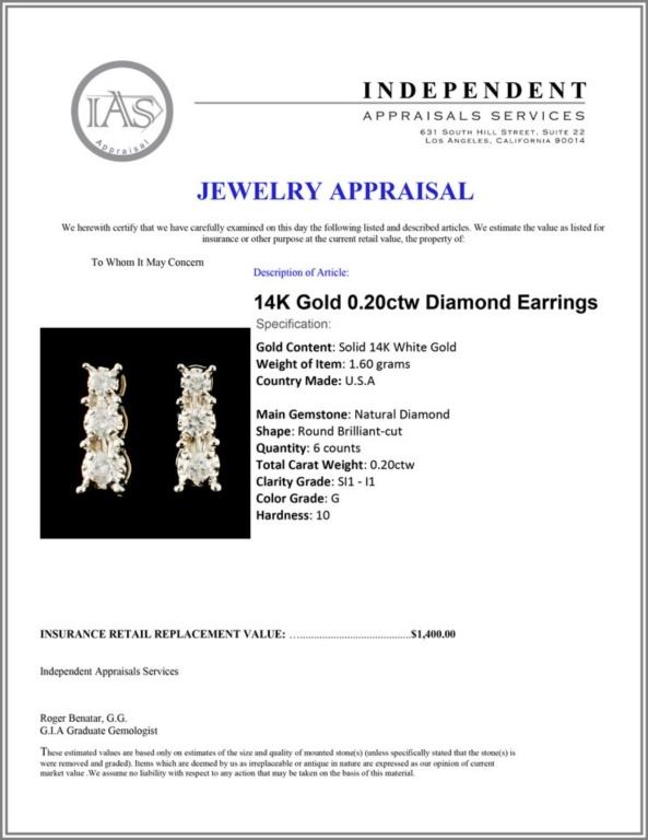 Regarding Appraised Jewelry and Loose Stones - Auctionfarm sends them out to a third party for Retail Replacement Value Appraisals, which are the most common. These types of evaluations are written for insurance needs. This would be the cost to replace the jewelry with an item of equal quality and kind, considered to be the current market price or the replacement value. This type of appraisal is done to protect you in the event of damage or loss of a valuable item. Our appraisals are conducted by independent 3rd Party appraisal firms that utilizes Certified GIA Gemologist. Appraisals should be used for verification of gemstone and/or metal weight, size, and grade only, not actual value. Appraisal value should be considered for insurance purposes only, not actual value, as price varies greatly from retail locations thru out the world. Items should not be purchased with the expectation to resell for appraisal price, or for profit.