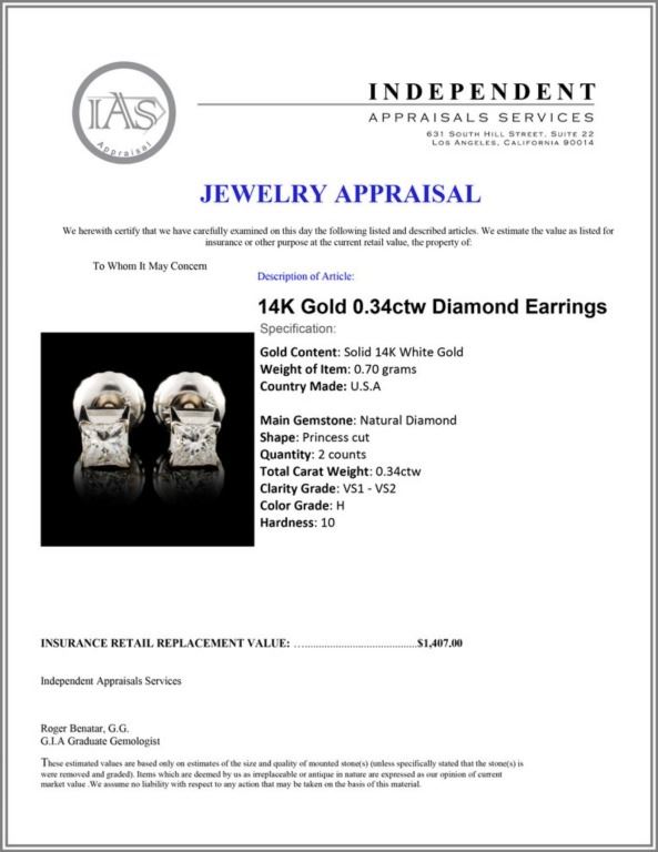 Regarding Appraised Jewelry and Loose Stones - Auctionfarm sends them out to a third party for Retail Replacement Value Appraisals, which are the most common. These types of evaluations are written for insurance needs. This would be the cost to replace the jewelry with an item of equal quality and kind, considered to be the current market price or the replacement value. This type of appraisal is done to protect you in the event of damage or loss of a valuable item. Our appraisals are conducted by independent 3rd Party appraisal firms that utilizes Certified GIA Gemologist. Appraisals should be used for verification of gemstone and/or metal weight, size, and grade only, not actual value. Appraisal value should be considered for insurance purposes only, not actual value, as price varies greatly from retail locations thru out the world. Items should not be purchased with the expectation to resell for appraisal price, or for profit.