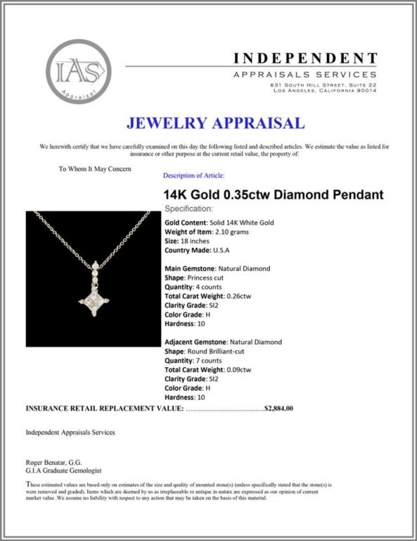 Regarding Appraised Jewelry and Loose Stones - Auctionfarm sends them out to a third party for Retail Replacement Value Appraisals, which are the most common. These types of evaluations are written for insurance needs. This would be the cost to replace the jewelry with an item of equal quality and kind, considered to be the current market price or the replacement value. This type of appraisal is done to protect you in the event of damage or loss of a valuable item. Our appraisals are conducted by independent 3rd Party appraisal firms that utilizes Certified GIA Gemologist. Appraisals should be used for verification of gemstone and/or metal weight, size, and grade only, not actual value. Appraisal value should be considered for insurance purposes only, not actual value, as price varies greatly from retail locations thru out the world. Items should not be purchased with the expectation to resell for appraisal price, or for profit.
