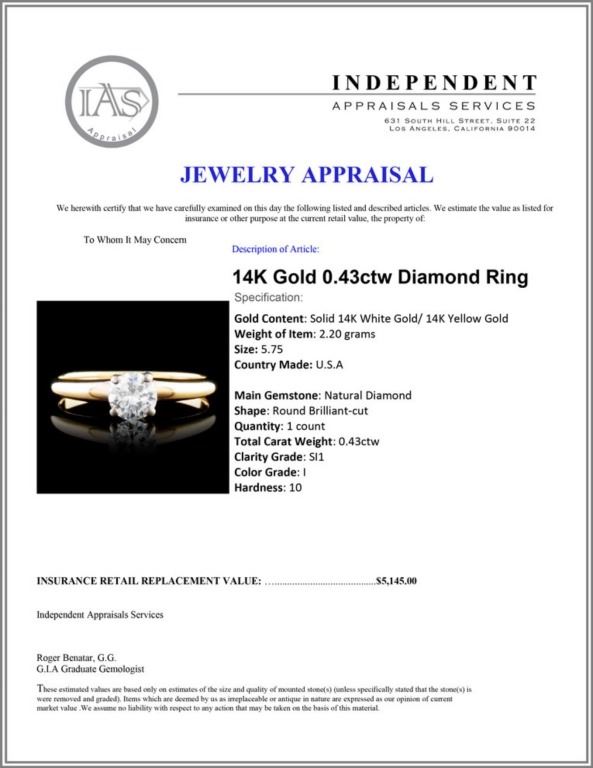 Regarding Appraised Jewelry and Loose Stones - Auctionfarm sends them out to a third party for Retail Replacement Value Appraisals, which are the most common. These types of evaluations are written for insurance needs. This would be the cost to replace the jewelry with an item of equal quality and kind, considered to be the current market price or the replacement value. This type of appraisal is done to protect you in the event of damage or loss of a valuable item. Our appraisals are conducted by independent 3rd Party appraisal firms that utilizes Certified GIA Gemologist. Appraisals should be used for verification of gemstone and/or metal weight, size, and grade only, not actual value. Appraisal value should be considered for insurance purposes only, not actual value, as price varies greatly from retail locations thru out the world. Items should not be purchased with the expectation to resell for appraisal price, or for profit.