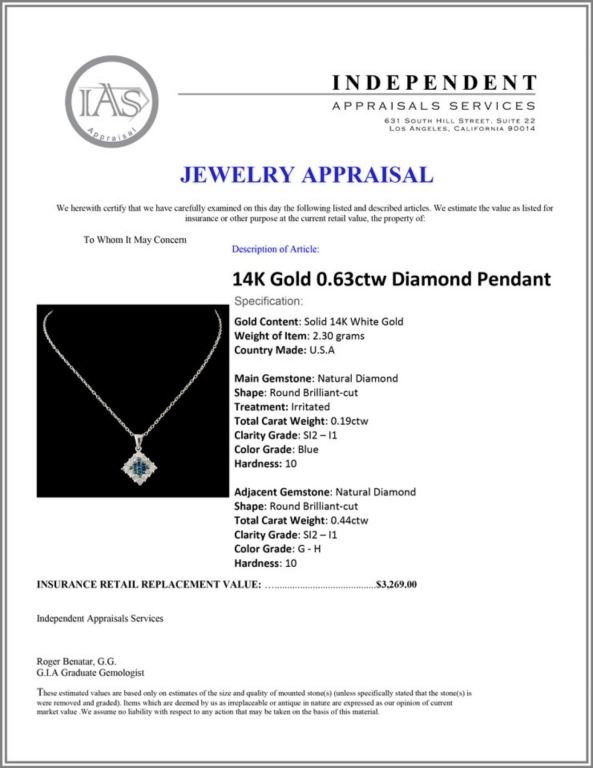 Regarding Appraised Jewelry and Loose Stones - Auctionfarm sends them out to a third party for Retail Replacement Value Appraisals, which are the most common. These types of evaluations are written for insurance needs. This would be the cost to replace the jewelry with an item of equal quality and kind, considered to be the current market price or the replacement value. This type of appraisal is done to protect you in the event of damage or loss of a valuable item. Our appraisals are conducted by independent 3rd Party appraisal firms that utilizes Certified GIA Gemologist. Appraisals should be used for verification of gemstone and/or metal weight, size, and grade only, not actual value. Appraisal value should be considered for insurance purposes only, not actual value, as price varies greatly from retail locations thru out the world. Items should not be purchased with the expectation to resell for appraisal price, or for profit.