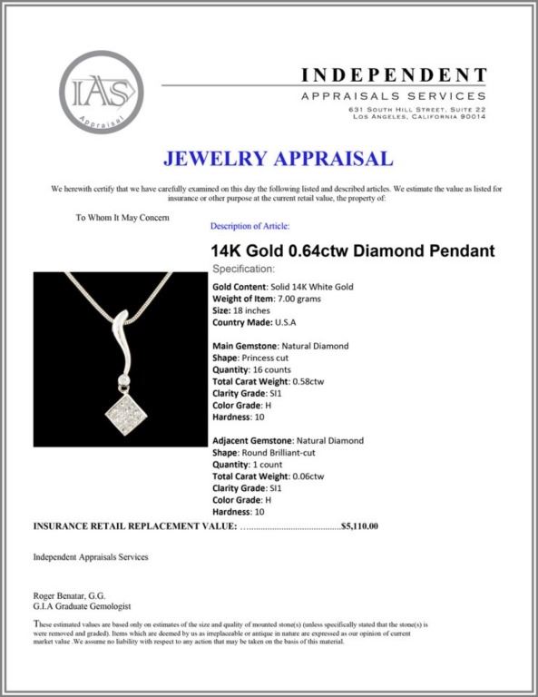 Regarding Appraised Jewelry and Loose Stones - Auctionfarm sends them out to a third party for Retail Replacement Value Appraisals, which are the most common. These types of evaluations are written for insurance needs. This would be the cost to replace the jewelry with an item of equal quality and kind, considered to be the current market price or the replacement value. This type of appraisal is done to protect you in the event of damage or loss of a valuable item. Our appraisals are conducted by independent 3rd Party appraisal firms that utilizes Certified GIA Gemologist. Appraisals should be used for verification of gemstone and/or metal weight, size, and grade only, not actual value. Appraisal value should be considered for insurance purposes only, not actual value, as price varies greatly from retail locations thru out the world. Items should not be purchased with the expectation to resell for appraisal price, or for profit.