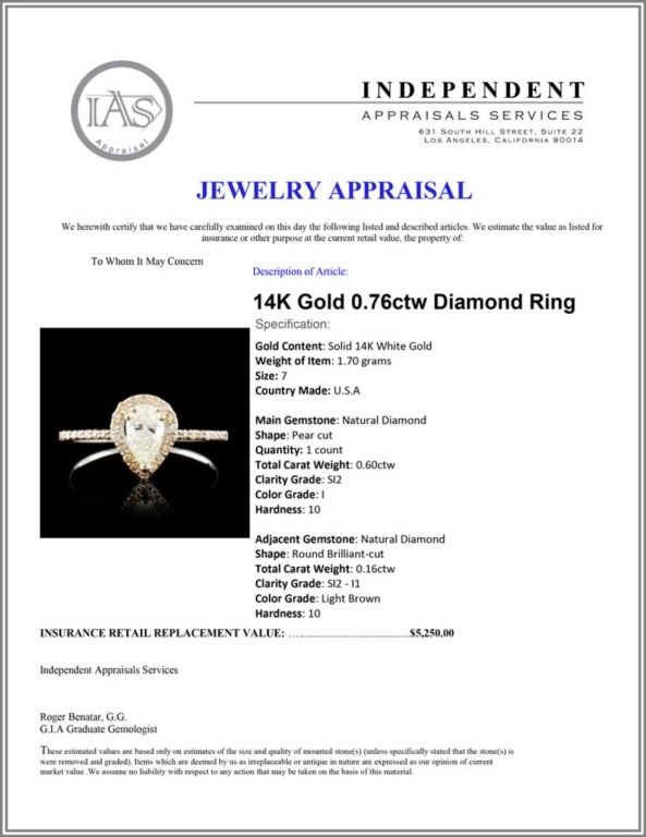 Regarding Appraised Jewelry and Loose Stones - Auctionfarm sends them out to a third party for Retail Replacement Value Appraisals, which are the most common. These types of evaluations are written for insurance needs. This would be the cost to replace the jewelry with an item of equal quality and kind, considered to be the current market price or the replacement value. This type of appraisal is done to protect you in the event of damage or loss of a valuable item. Our appraisals are conducted by independent 3rd Party appraisal firms that utilizes Certified GIA Gemologist. Appraisals should be used for verification of gemstone and/or metal weight, size, and grade only, not actual value. Appraisal value should be considered for insurance purposes only, not actual value, as price varies greatly from retail locations thru out the world. Items should not be purchased with the expectation to resell for appraisal price, or for profit.