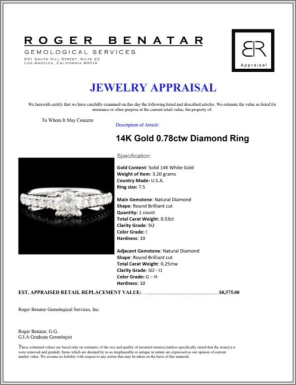 Regarding Appraised Jewelry and Loose Stones - Auctionfarm sends them out to a third party for Retail Replacement Value Appraisals, which are the most common. These types of evaluations are written for insurance needs. This would be the cost to replace the jewelry with an item of equal quality and kind, considered to be the current market price or the replacement value. This type of appraisal is done to protect you in the event of damage or loss of a valuable item. Our appraisals are conducted by independent 3rd Party appraisal firms that utilizes Certified GIA Gemologist. Appraisals should be used for verification of gemstone and/or metal weight, size, and grade only, not actual value. Appraisal value should be considered for insurance purposes only, not actual value, as price varies greatly from retail locations thru out the world. Items should not be purchased with the expectation to resell for appraisal price, or for profit.