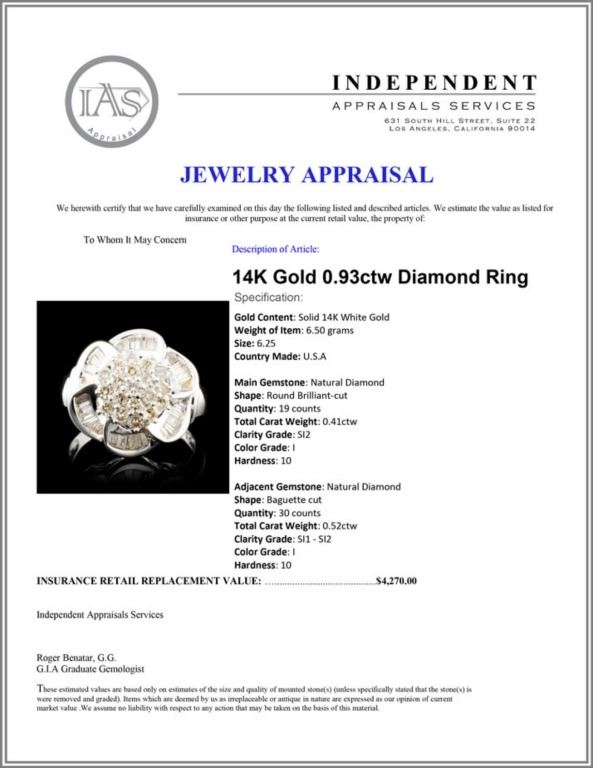 Regarding Appraised Jewelry and Loose Stones - Auctionfarm sends them out to a third party for Retail Replacement Value Appraisals, which are the most common. These types of evaluations are written for insurance needs. This would be the cost to replace the jewelry with an item of equal quality and kind, considered to be the current market price or the replacement value. This type of appraisal is done to protect you in the event of damage or loss of a valuable item. Our appraisals are conducted by independent 3rd Party appraisal firms that utilizes Certified GIA Gemologist. Appraisals should be used for verification of gemstone and/or metal weight, size, and grade only, not actual value. Appraisal value should be considered for insurance purposes only, not actual value, as price varies greatly from retail locations thru out the world. Items should not be purchased with the expectation to resell for appraisal price, or for profit.