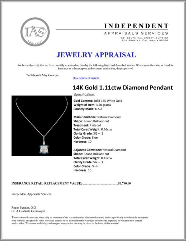 Regarding Appraised Jewelry and Loose Stones - Auctionfarm sends them out to a third party for Retail Replacement Value Appraisals, which are the most common. These types of evaluations are written for insurance needs. This would be the cost to replace the jewelry with an item of equal quality and kind, considered to be the current market price or the replacement value. This type of appraisal is done to protect you in the event of damage or loss of a valuable item. Our appraisals are conducted by independent 3rd Party appraisal firms that utilizes Certified GIA Gemologist. Appraisals should be used for verification of gemstone and/or metal weight, size, and grade only, not actual value. Appraisal value should be considered for insurance purposes only, not actual value, as price varies greatly from retail locations thru out the world. Items should not be purchased with the expectation to resell for appraisal price, or for profit.