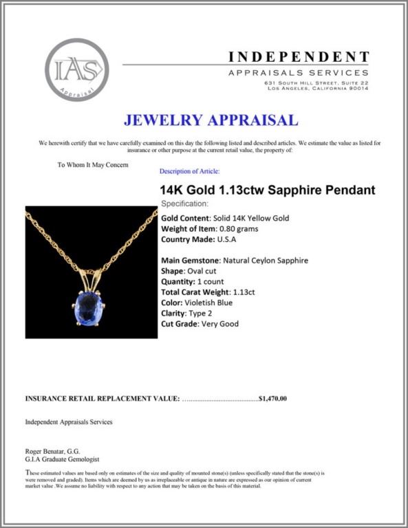 Regarding Appraised Jewelry and Loose Stones - Auctionfarm sends them out to a third party for Retail Replacement Value Appraisals, which are the most common. These types of evaluations are written for insurance needs. This would be the cost to replace the jewelry with an item of equal quality and kind, considered to be the current market price or the replacement value. This type of appraisal is done to protect you in the event of damage or loss of a valuable item. Our appraisals are conducted by independent 3rd Party appraisal firms that utilizes Certified GIA Gemologist. Appraisals should be used for verification of gemstone and/or metal weight, size, and grade only, not actual value. Appraisal value should be considered for insurance purposes only, not actual value, as price varies greatly from retail locations thru out the world. Items should not be purchased with the expectation to resell for appraisal price, or for profit.