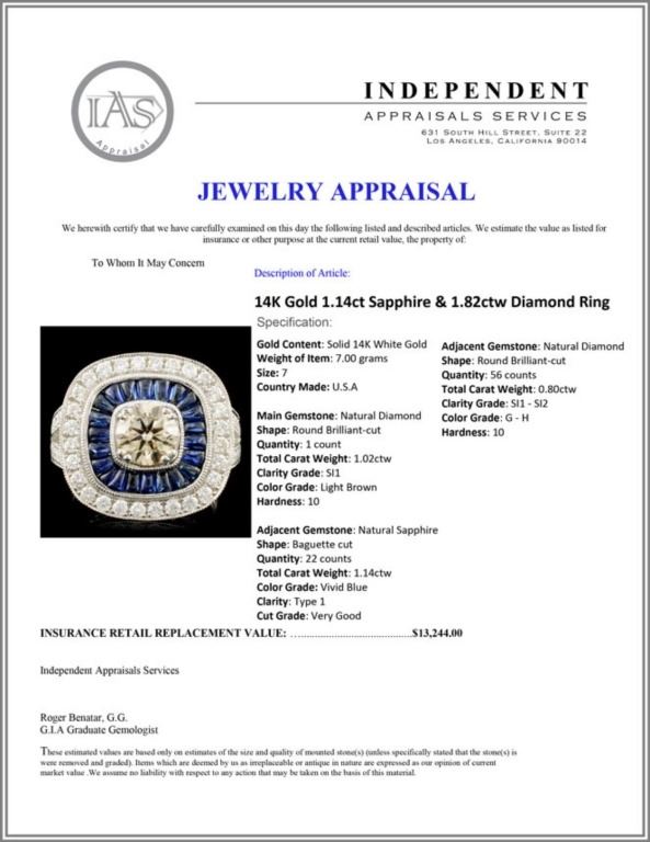 Regarding Appraised Jewelry and Loose Stones - Auctionfarm sends them out to a third party for Retail Replacement Value Appraisals, which are the most common. These types of evaluations are written for insurance needs. This would be the cost to replace the jewelry with an item of equal quality and kind, considered to be the current market price or the replacement value. This type of appraisal is done to protect you in the event of damage or loss of a valuable item. Our appraisals are conducted by independent 3rd Party appraisal firms that utilizes Certified GIA Gemologist. Appraisals should be used for verification of gemstone and/or metal weight, size, and grade only, not actual value. Appraisal value should be considered for insurance purposes only, not actual value, as price varies greatly from retail locations thru out the world. Items should not be purchased with the expectation to resell for appraisal price, or for profit.