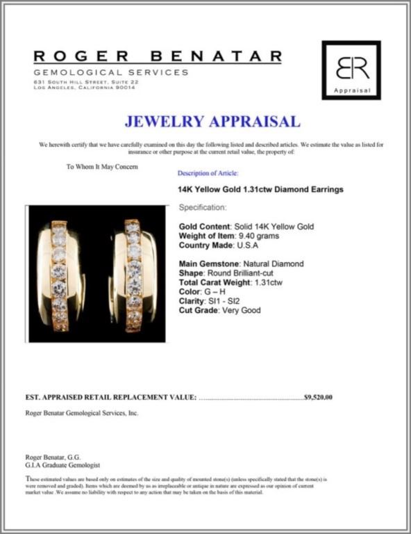 Regarding Appraised Jewelry and Loose Stones - Auctionfarm sends them out to a third party for Retail Replacement Value Appraisals, which are the most common. These types of evaluations are written for insurance needs. This would be the cost to replace the jewelry with an item of equal quality and kind, considered to be the current market price or the replacement value. This type of appraisal is done to protect you in the event of damage or loss of a valuable item. Our appraisals are conducted by independent 3rd Party appraisal firms that utilizes Certified GIA Gemologist. Appraisals should be used for verification of gemstone and/or metal weight, size, and grade only, not actual value. Appraisal value should be considered for insurance purposes only, not actual value, as price varies greatly from retail locations thru out the world. Items should not be purchased with the expectation to resell for appraisal price, or for profit.