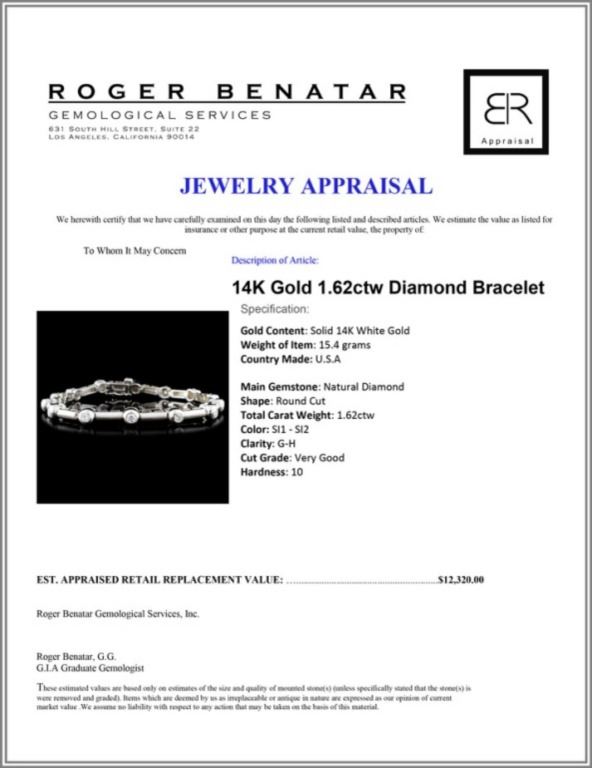 Regarding Appraised Jewelry and Loose Stones - Auctionfarm sends them out to a third party for Retail Replacement Value Appraisals, which are the most common. These types of evaluations are written for insurance needs. This would be the cost to replace the jewelry with an item of equal quality and kind, considered to be the current market price or the replacement value. This type of appraisal is done to protect you in the event of damage or loss of a valuable item. Our appraisals are conducted by independent 3rd Party appraisal firms that utilizes Certified GIA Gemologist. Appraisals should be used for verification of gemstone and/or metal weight, size, and grade only, not actual value. Appraisal value should be considered for insurance purposes only, not actual value, as price varies greatly from retail locations thru out the world. Items should not be purchased with the expectation to resell for appraisal price, or for profit.