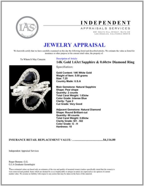 Regarding Appraised Jewelry and Loose Stones - Auctionfarm sends them out to a third party for Retail Replacement Value Appraisals, which are the most common. These types of evaluations are written for insurance needs. This would be the cost to replace the jewelry with an item of equal quality and kind, considered to be the current market price or the replacement value. This type of appraisal is done to protect you in the event of damage or loss of a valuable item. Our appraisals are conducted by independent 3rd Party appraisal firms that utilizes Certified GIA Gemologist. Appraisals should be used for verification of gemstone and/or metal weight, size, and grade only, not actual value. Appraisal value should be considered for insurance purposes only, not actual value, as price varies greatly from retail locations thru out the world. Items should not be purchased with the expectation to resell for appraisal price, or for profit.