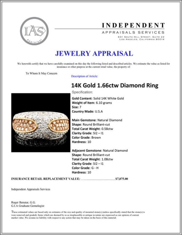 Regarding Appraised Jewelry and Loose Stones - Auctionfarm sends them out to a third party for Retail Replacement Value Appraisals, which are the most common. These types of evaluations are written for insurance needs. This would be the cost to replace the jewelry with an item of equal quality and kind, considered to be the current market price or the replacement value. This type of appraisal is done to protect you in the event of damage or loss of a valuable item. Our appraisals are conducted by independent 3rd Party appraisal firms that utilizes Certified GIA Gemologist. Appraisals should be used for verification of gemstone and/or metal weight, size, and grade only, not actual value. Appraisal value should be considered for insurance purposes only, not actual value, as price varies greatly from retail locations thru out the world. Items should not be purchased with the expectation to resell for appraisal price, or for profit.