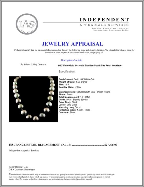 Regarding Appraised Jewelry and Loose Stones - Auctionfarm sends them out to a third party for Retail Replacement Value Appraisals, which are the most common. These types of evaluations are written for insurance needs. This would be the cost to replace the jewelry with an item of equal quality and kind, considered to be the current market price or the replacement value. This type of appraisal is done to protect you in the event of damage or loss of a valuable item. Our appraisals are conducted by independent 3rd Party appraisal firms that utilizes Certified GIA Gemologist. Appraisals should be used for verification of gemstone and/or metal weight, size, and grade only, not actual value. Appraisal value should be considered for insurance purposes only, not actual value, as price varies greatly from retail locations thru out the world. Items should not be purchased with the expectation to resell for appraisal price, or for profit.