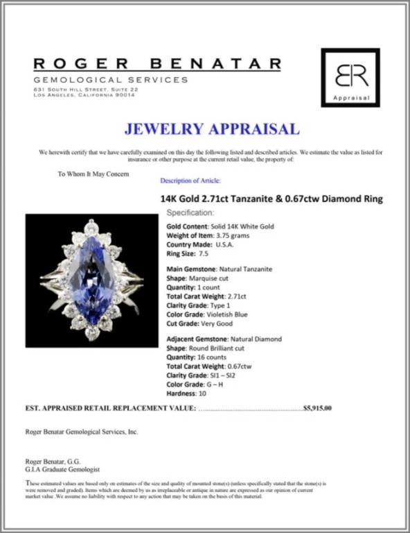 Regarding Appraised Jewelry and Loose Stones - Auctionfarm sends them out to a third party for Retail Replacement Value Appraisals, which are the most common. These types of evaluations are written for insurance needs. This would be the cost to replace the jewelry with an item of equal quality and kind, considered to be the current market price or the replacement value. This type of appraisal is done to protect you in the event of damage or loss of a valuable item. Our appraisals are conducted by independent 3rd Party appraisal firms that utilizes Certified GIA Gemologist. Appraisals should be used for verification of gemstone and/or metal weight, size, and grade only, not actual value. Appraisal value should be considered for insurance purposes only, not actual value, as price varies greatly from retail locations thru out the world. Items should not be purchased with the expectation to resell for appraisal price, or for profit.