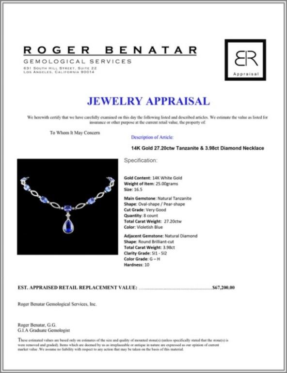 Regarding Appraised Jewelry and Loose Stones - Auctionfarm sends them out to a third party for Retail Replacement Value Appraisals, which are the most common. These types of evaluations are written for insurance needs. This would be the cost to replace the jewelry with an item of equal quality and kind, considered to be the current market price or the replacement value. This type of appraisal is done to protect you in the event of damage or loss of a valuable item. Our appraisals are conducted by independent 3rd Party appraisal firms that utilizes Certified GIA Gemologist. Appraisals should be used for verification of gemstone and/or metal weight, size, and grade only, not actual value. Appraisal value should be considered for insurance purposes only, not actual value, as price varies greatly from retail locations thru out the world. Items should not be purchased with the expectation to resell for appraisal price, or for profit.