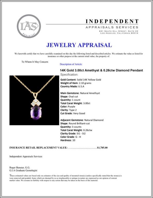 Regarding Appraised Jewelry and Loose Stones - Auctionfarm sends them out to a third party for Retail Replacement Value Appraisals, which are the most common. These types of evaluations are written for insurance needs. This would be the cost to replace the jewelry with an item of equal quality and kind, considered to be the current market price or the replacement value. This type of appraisal is done to protect you in the event of damage or loss of a valuable item. Our appraisals are conducted by independent 3rd Party appraisal firms that utilizes Certified GIA Gemologist. Appraisals should be used for verification of gemstone and/or metal weight, size, and grade only, not actual value. Appraisal value should be considered for insurance purposes only, not actual value, as price varies greatly from retail locations thru out the world. Items should not be purchased with the expectation to resell for appraisal price, or for profit.
