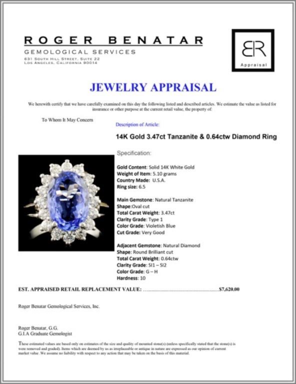 Regarding Appraised Jewelry and Loose Stones - Auctionfarm sends them out to a third party for Retail Replacement Value Appraisals, which are the most common. These types of evaluations are written for insurance needs. This would be the cost to replace the jewelry with an item of equal quality and kind, considered to be the current market price or the replacement value. This type of appraisal is done to protect you in the event of damage or loss of a valuable item. Our appraisals are conducted by independent 3rd Party appraisal firms that utilizes Certified GIA Gemologist. Appraisals should be used for verification of gemstone and/or metal weight, size, and grade only, not actual value. Appraisal value should be considered for insurance purposes only, not actual value, as price varies greatly from retail locations thru out the world. Items should not be purchased with the expectation to resell for appraisal price, or for profit.