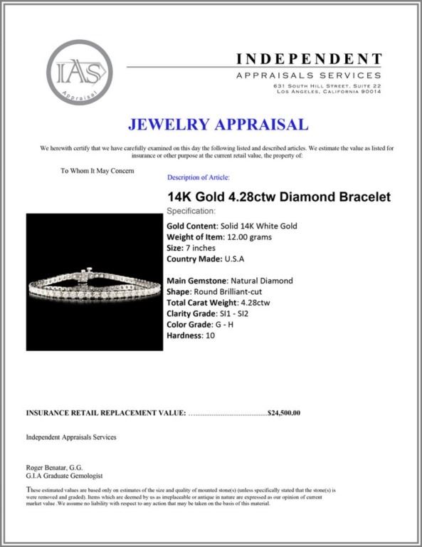 Regarding Appraised Jewelry and Loose Stones - Auctionfarm sends them out to a third party for Retail Replacement Value Appraisals, which are the most common. These types of evaluations are written for insurance needs. This would be the cost to replace the jewelry with an item of equal quality and kind, considered to be the current market price or the replacement value. This type of appraisal is done to protect you in the event of damage or loss of a valuable item. Our appraisals are conducted by independent 3rd Party appraisal firms that utilizes Certified GIA Gemologist. Appraisals should be used for verification of gemstone and/or metal weight, size, and grade only, not actual value. Appraisal value should be considered for insurance purposes only, not actual value, as price varies greatly from retail locations thru out the world. Items should not be purchased with the expectation to resell for appraisal price, or for profit.