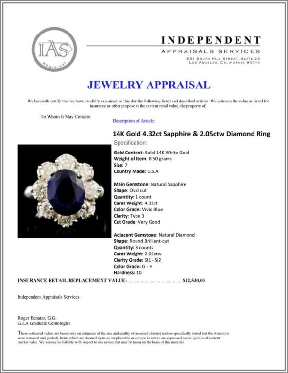 Regarding Appraised Jewelry and Loose Stones - Auctionfarm sends them out to a third party for Retail Replacement Value Appraisals, which are the most common. These types of evaluations are written for insurance needs. This would be the cost to replace the jewelry with an item of equal quality and kind, considered to be the current market price or the replacement value. This type of appraisal is done to protect you in the event of damage or loss of a valuable item. Our appraisals are conducted by independent 3rd Party appraisal firms that utilizes Certified GIA Gemologist. Appraisals should be used for verification of gemstone and/or metal weight, size, and grade only, not actual value. Appraisal value should be considered for insurance purposes only, not actual value, as price varies greatly from retail locations thru out the world. Items should not be purchased with the expectation to resell for appraisal price, or for profit.
