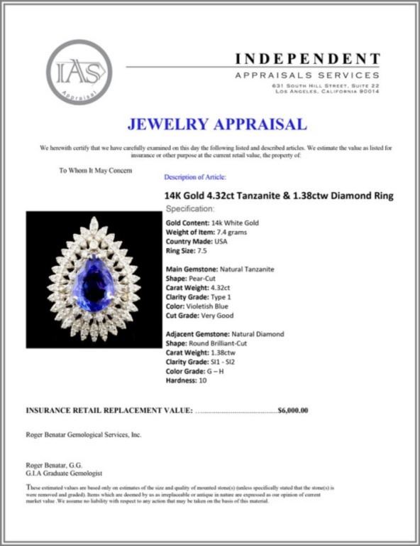Regarding Appraised Jewelry and Loose Stones - Auctionfarm sends them out to a third party for Retail Replacement Value Appraisals, which are the most common. These types of evaluations are written for insurance needs. This would be the cost to replace the jewelry with an item of equal quality and kind, considered to be the current market price or the replacement value. This type of appraisal is done to protect you in the event of damage or loss of a valuable item. Our appraisals are conducted by independent 3rd Party appraisal firms that utilizes Certified GIA Gemologist. Appraisals should be used for verification of gemstone and/or metal weight, size, and grade only, not actual value. Appraisal value should be considered for insurance purposes only, not actual value, as price varies greatly from retail locations thru out the world. Items should not be purchased with the expectation to resell for appraisal price, or for profit.