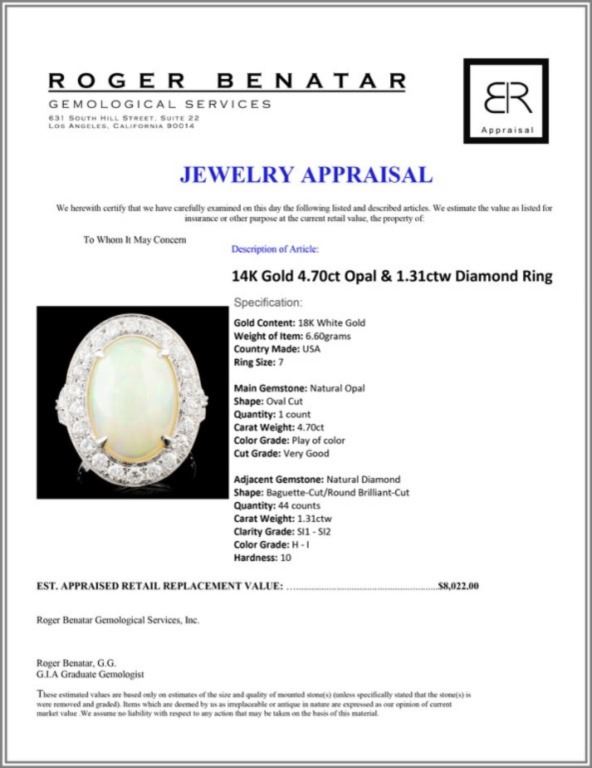 Regarding Appraised Jewelry and Loose Stones - Auctionfarm sends them out to a third party for Retail Replacement Value Appraisals, which are the most common. These types of evaluations are written for insurance needs. This would be the cost to replace the jewelry with an item of equal quality and kind, considered to be the current market price or the replacement value. This type of appraisal is done to protect you in the event of damage or loss of a valuable item. Our appraisals are conducted by independent 3rd Party appraisal firms that utilizes Certified GIA Gemologist. Appraisals should be used for verification of gemstone and/or metal weight, size, and grade only, not actual value. Appraisal value should be considered for insurance purposes only, not actual value, as price varies greatly from retail locations thru out the world. Items should not be purchased with the expectation to resell for appraisal price, or for profit.