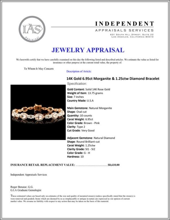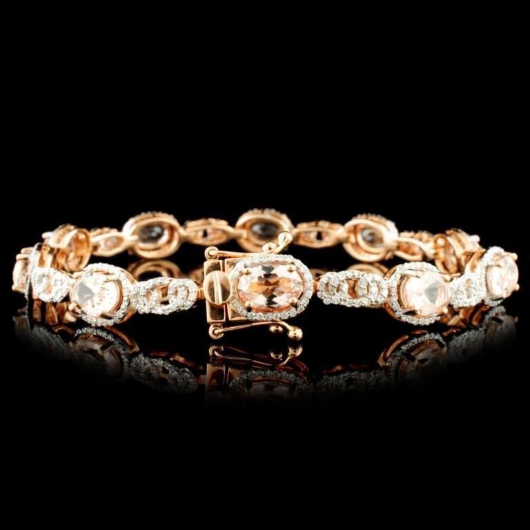 14K Gold 6.95ct Morganite & 1.25ctw Diamond Bracel