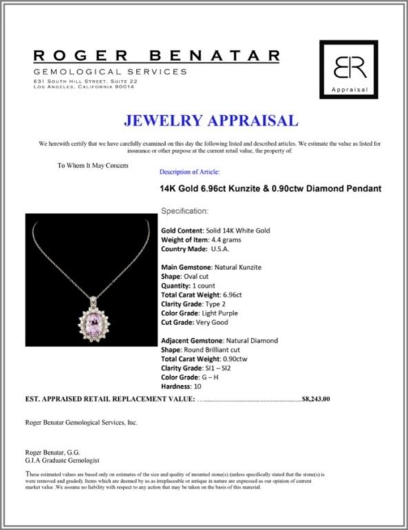 Regarding Appraised Jewelry and Loose Stones - Auctionfarm sends them out to a third party for Retail Replacement Value Appraisals, which are the most common. These types of evaluations are written for insurance needs. This would be the cost to replace the jewelry with an item of equal quality and kind, considered to be the current market price or the replacement value. This type of appraisal is done to protect you in the event of damage or loss of a valuable item. Our appraisals are conducted by independent 3rd Party appraisal firms that utilizes Certified GIA Gemologist. Appraisals should be used for verification of gemstone and/or metal weight, size, and grade only, not actual value. Appraisal value should be considered for insurance purposes only, not actual value, as price varies greatly from retail locations thru out the world. Items should not be purchased with the expectation to resell for appraisal price, or for profit.