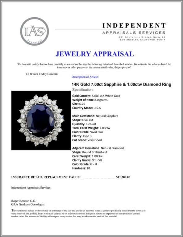 Regarding Appraised Jewelry and Loose Stones - Auctionfarm sends them out to a third party for Retail Replacement Value Appraisals, which are the most common. These types of evaluations are written for insurance needs. This would be the cost to replace the jewelry with an item of equal quality and kind, considered to be the current market price or the replacement value. This type of appraisal is done to protect you in the event of damage or loss of a valuable item. Our appraisals are conducted by independent 3rd Party appraisal firms that utilizes Certified GIA Gemologist. Appraisals should be used for verification of gemstone and/or metal weight, size, and grade only, not actual value. Appraisal value should be considered for insurance purposes only, not actual value, as price varies greatly from retail locations thru out the world. Items should not be purchased with the expectation to resell for appraisal price, or for profit.