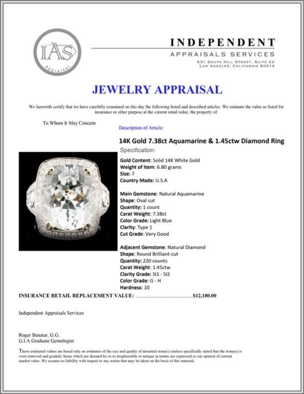 Regarding Appraised Jewelry and Loose Stones - Auctionfarm sends them out to a third party for Retail Replacement Value Appraisals, which are the most common. These types of evaluations are written for insurance needs. This would be the cost to replace the jewelry with an item of equal quality and kind, considered to be the current market price or the replacement value. This type of appraisal is done to protect you in the event of damage or loss of a valuable item. Our appraisals are conducted by independent 3rd Party appraisal firms that utilizes Certified GIA Gemologist. Appraisals should be used for verification of gemstone and/or metal weight, size, and grade only, not actual value. Appraisal value should be considered for insurance purposes only, not actual value, as price varies greatly from retail locations thru out the world. Items should not be purchased with the expectation to resell for appraisal price, or for profit.